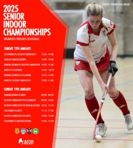This year sees a restructuring of the All-Ireland Hockey Indoor Club Championships. As in previous years, there will be 2 Ulster Competitions, a Ladies Competition and a Mens Competition with both being held on Sunday 12th January 2025 and Sunday 19th January 2025 at the Antrim Forum.