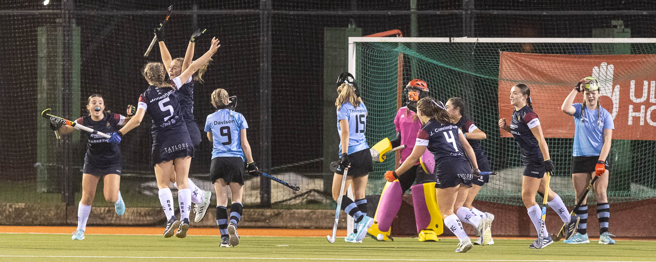 Having won their first penalty corner they quickly won a second before the Portadown first runner was off her line quickly and cleared the danger to keep it 0-0.