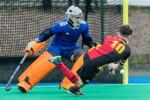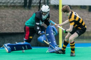 The McCullough Cup started ferociously with Banbridge Academy pushing hard into the RBAI half and before long being awarded by their efforts with a goal from Captain Matthew McKee firing it over RBAI GK Callum Ullah to go 1-0 up in the first quarter. With an equaliser from RBAI by George Palmer, the score levelled up to 1-1 at the end of the first half. The second half started with a goal from Banbridge, and their Captain Matthew McKee proving why he is the leader of the pack with a fast paced goal against the strong RBAI team. RBAI found themselves deep in Banbridge Academy territory after this with a short corner being awarded. After 4 short corners, RBAI failed to convert and play went up the other side of the pitch, only to return back down to Banbridge Academy’s end soon after. With another short corner awarded to RBAI, the team finally converted after 3 more attempts to equalise the match at 2-2 with a goal from John Cunningham. Where the scored stayed. Meaning there would penalty run-ins.