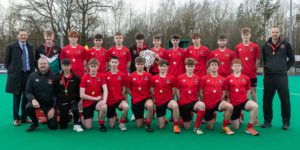 With an aggressive and pushing start from Wallace High School and an early goal from a short corner scored by Harry Gowdy, Wallace were looking formidable at the start of the final match. Banbridge pushed back hard in the 1st quarter but couldn’t convert with the first quarter ending 1-0 Wallace High School. Banbridge Academy pushed back strong, with great possession in the 2nd quarter, culminating in an equaliser by Simon Ferris. This goal seemed to open the floodgates for Banbridge Academy, even with Wallace pushing hard and earning a short corner, they couldn’t convert their chance against a strong defence by Banbridge Academy. In the 2nd half of the match an early goal was scored by Banbridge Academy by Noah Lutton followed by a third by Daniel Reid. Wallace High School kept the pressure on and pushed back hard but a more dominant Banbridge went on to score a fourth and final goal sealing the match at 4 – 1.