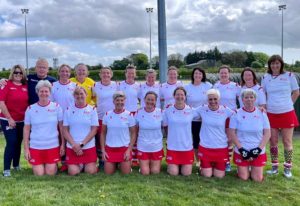 “Our Ulster 40’s squad travelled to Cork to play in the first Interprovincial Tournament since 2019.  The squad was superbly led by coach Emma Gillespie and managed by Gail Nicholson.  We started the tournament strong on the Saturday with a 2-0 win over South East; a few hours later we settled ourselves to play the tournament hosts, Munster.  This match was full of exciting play and nervous moments for those watching from the sideline, in the final quarter the score stood as 3-2 for Munster.  With 20 seconds to go Sabrina Barnett took the Ulster free quickly, getting the ball to Aine Kearney who calmly passed the ball for Jenny McAuley to put into the back of the net; final score 3-3.  Ulster finished Day 1 at top of the table, and attended the lovely reception that was kindly organised by our hosts Munster.